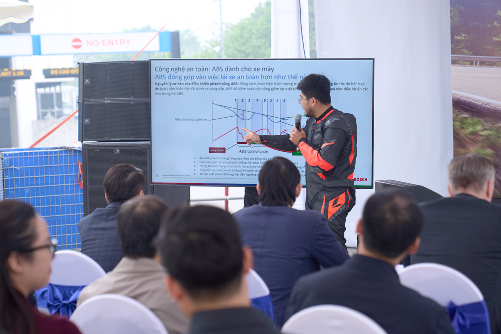 Tại sự kiện, các nhà hoạch định chính sách, đại diện cơ quan quản lý nhà nước, nhóm chuyên gia cố vấn, truyền thông và công chúng đã có cơ hội trực tiếp quan sát và trải nghiệm cách hệ thống M-ABS vận hành trong những tình huống phanh khẩn cấp. Thông qua các phiên mô phỏng thực tế, sự khác biệt rõ rệt giữa xe máy có trang bị và không trang bị ABS đã được minh họa trực quan, cho thấy khả năng kiểm soát và độ ổn định vượt trội của xe khi phanh gấp.