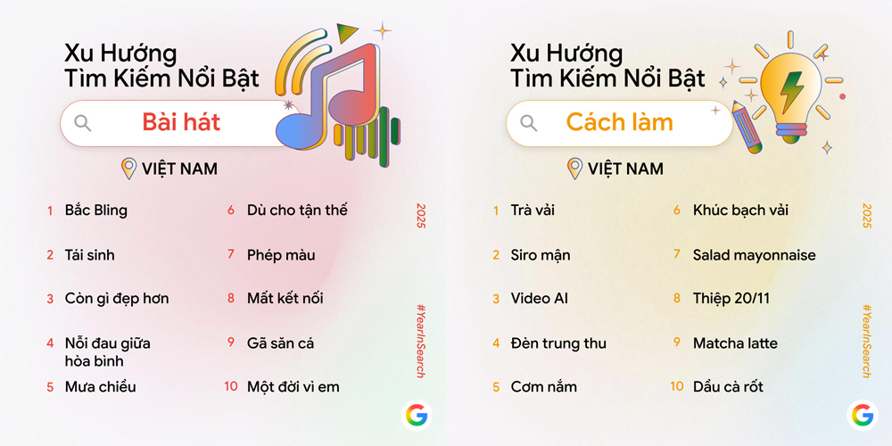 Ở chủ đề Cách làm, người dùng tiếp tục tìm kiếm các hướng dẫn thực tế như pha trà vải, làm siro mận, khúc bạch vải, làm đèn trung thu, bên cạnh xu hướng mới như tạo video bằng AI. Điều này thể hiện Google Tìm kiếm tiếp tục là công cụ giúp người Việt học kỹ năng mới, giải quyết nhu cầu đời sống và hoàn thiện năng lực số.